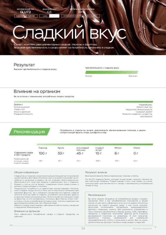 | Рацион питания Метаболизм алкоголя Метаболизм кофеина Физическая нагрузка Непереносимости Вкусовые ощущения Никотин Психологические зависимости Пищевое поведение Потребность в витаминах Уровень холестерина Спортивный потенциал | Рацион питания Метаболизм алкоголя Метаболизм кофеина Физическая нагрузка Непереносимости Вкусовые ощущения Никотин Психологические зависимости Пищевое поведение Потребность в витаминах Уровень холестерина Спортивный потенциал | Рацион питания Метаболизм алкоголя Метаболизм кофеина Физическая нагрузка Непереносимости Вкусовые ощущения Никотин Психологические зависимости Пищевое поведение Потребность в витаминах Уровень холестерина Спортивный потенциал |